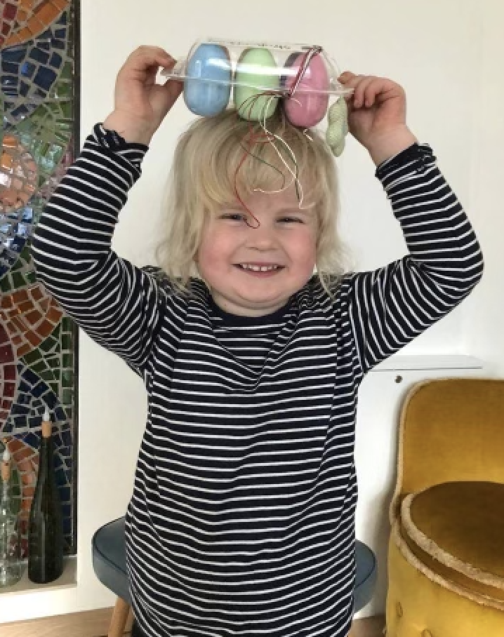 und Eva mit ihrem Gewinnerpreis.
